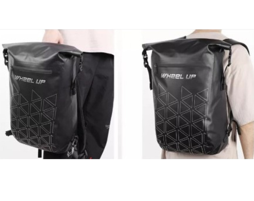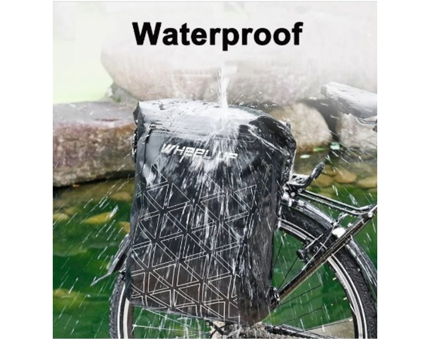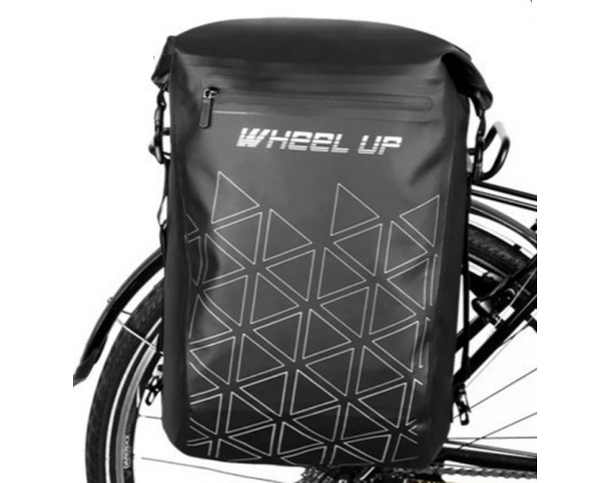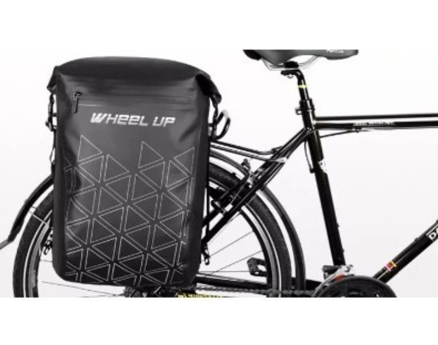 Alforja/ Bolso impermeable para asiento trasero de bicicleta Especificaciones: | 3. Hay una tira reflectante en la parte posterior para aumentar la conducción nocturna. Totalmente impermeable Color: Negro con diseño como en la foto |